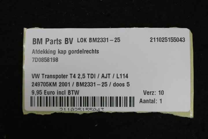 Afdekking kap gordel rechts VW Transporter T4