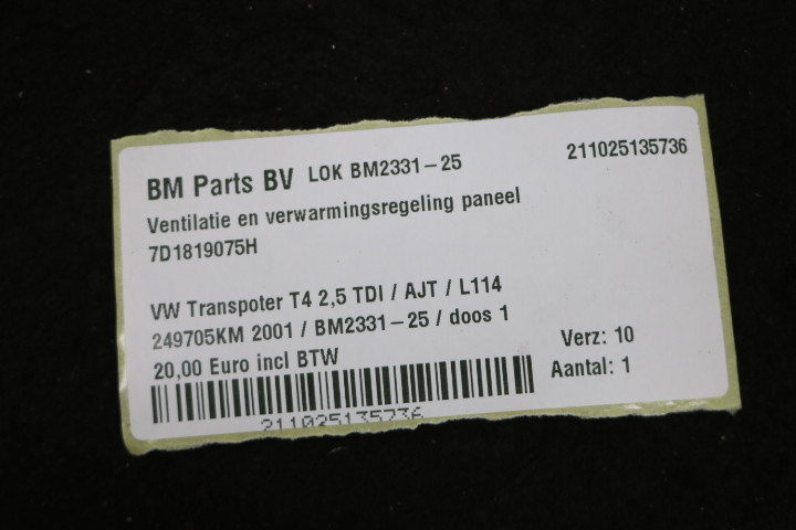 Ventilatie en verwarmingsregelingpaneel VW Transporter T4