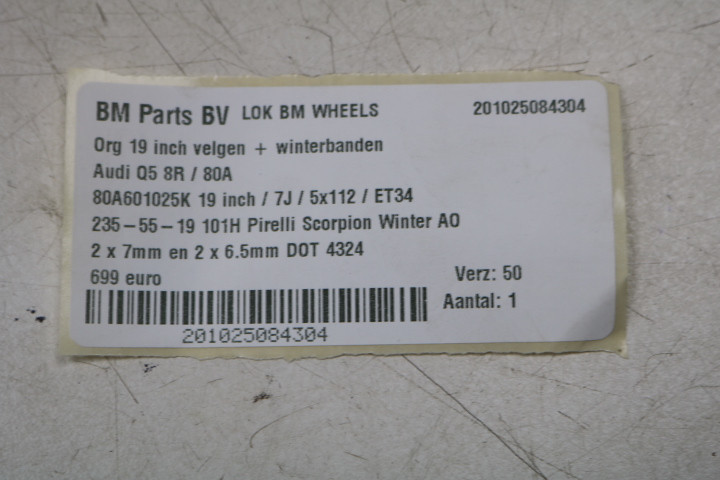 WINTER! ORIGINEEL! 19 inch velgen Audi Q5 80A 8R! 80A601025K