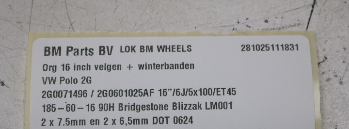 WINTER!! ORIGINEEL! 16 inch velgen Polo 2G! 2G0601025AF