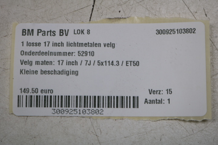 Velg maten: 17 inch / 7J / 5x114.3 / ET50