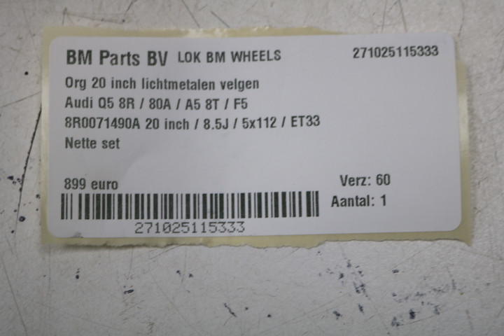• Maten: 8,5J / ET33 / 5x112 / 20 inch
