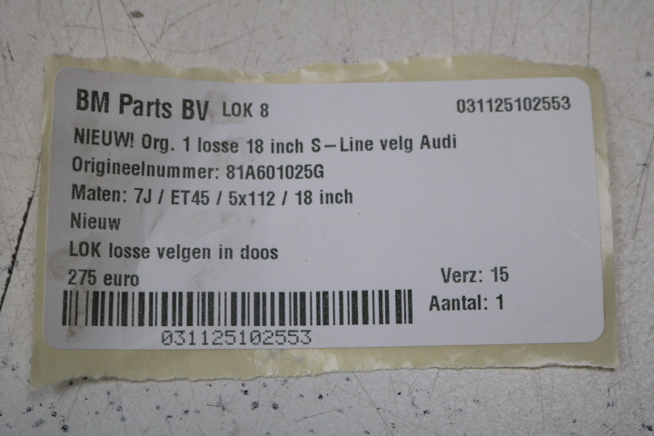 NIEUW! ORIGINEEL! 1 losse 18 inch S-Line velg Audi Q2! 81A601025G