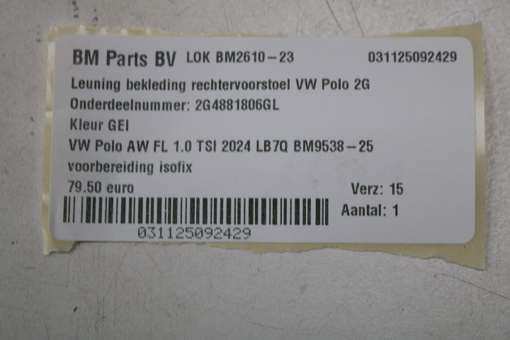 Leuning bekleding RV VW Polo 2G FL GEI