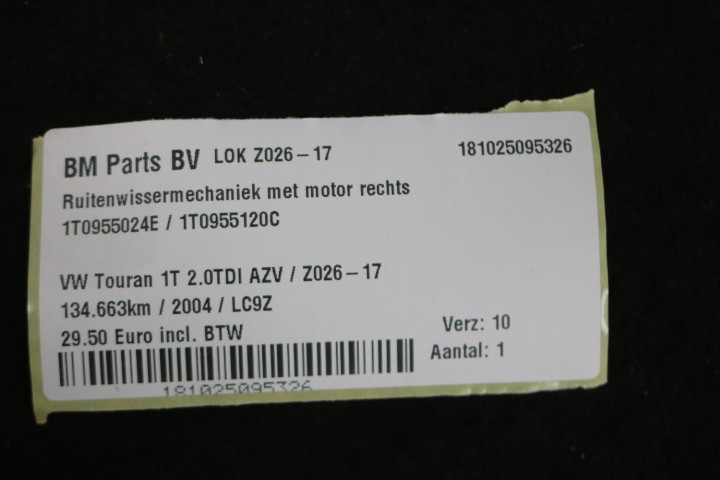 Ruitenwissermechaniek met motor rechts VW Touran 1T