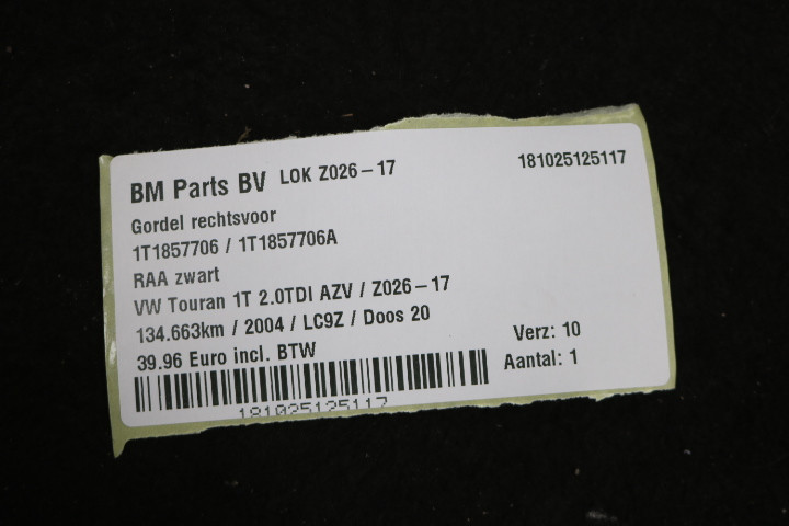 Gordel rechtsvoor VW Touran 1T