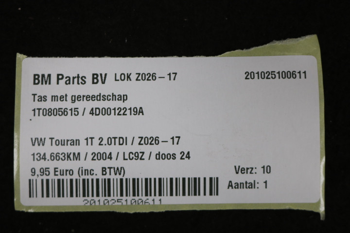 Tas met gereedschap VW Touran 1T