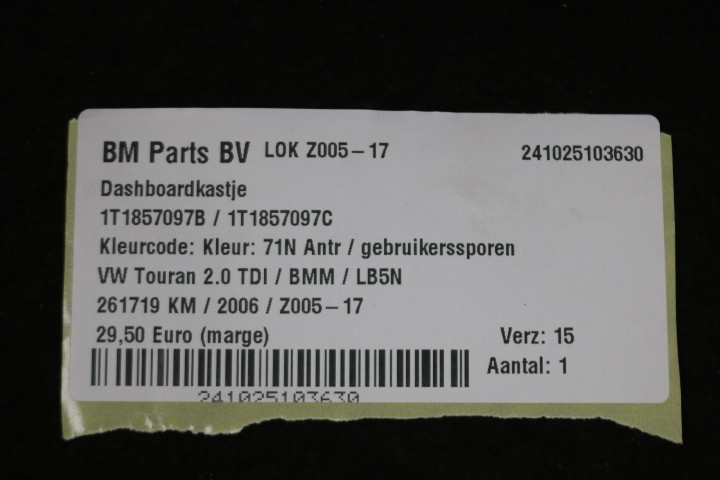 Dashboardkastje rechts VW Touran 1T