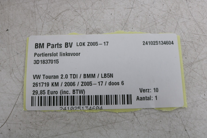 Portierslot linksvoor VW Touran 1T