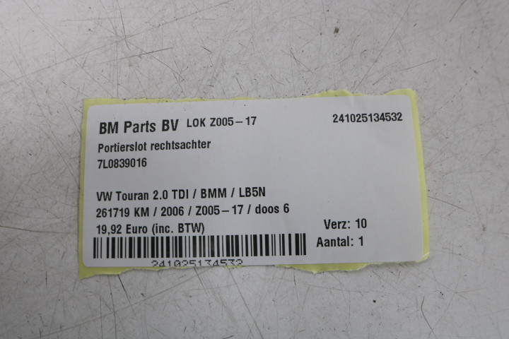 back / interieur / Deur / Portier Sloten / Portierslot rechtsachter VW Touran 1T