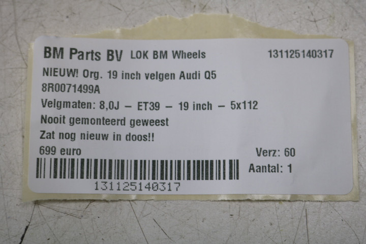 NIEUW! ORIGINEEL! 19 inch velgen Audi Q5 8R 80A! 8R0071499A