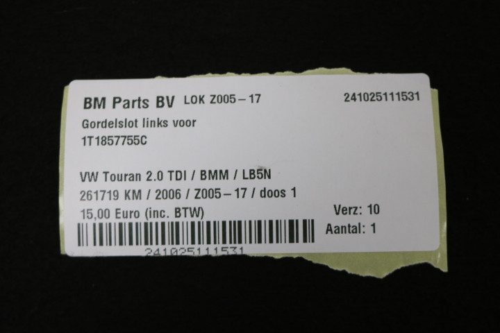 Gordelslot links voor VW Touran 1T
