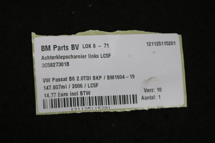 Achterklepscharnier links VW Passat B6 LC5F