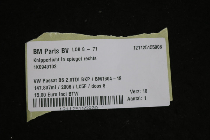Knipperlicht in spiegel rechts VW Passat B6