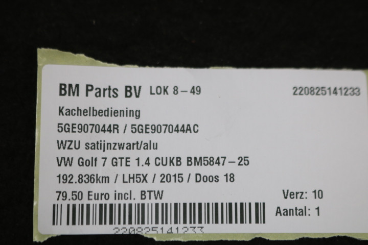 Terug / interieur / Kachel / Kachel Bediening / Kachelbediening VW Golf 7