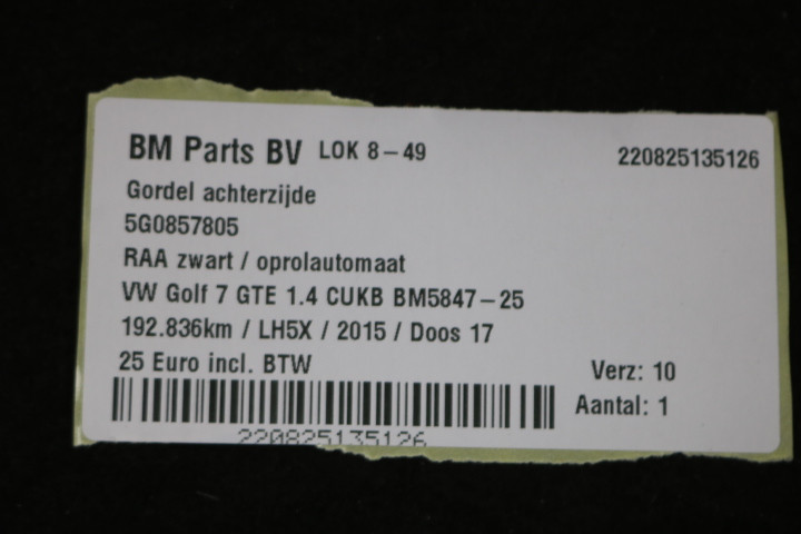 Gordel achterzijde VW Golf 7