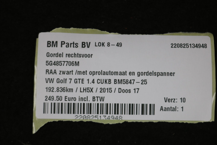 Gordel rechtsvoor VW Golf 7
