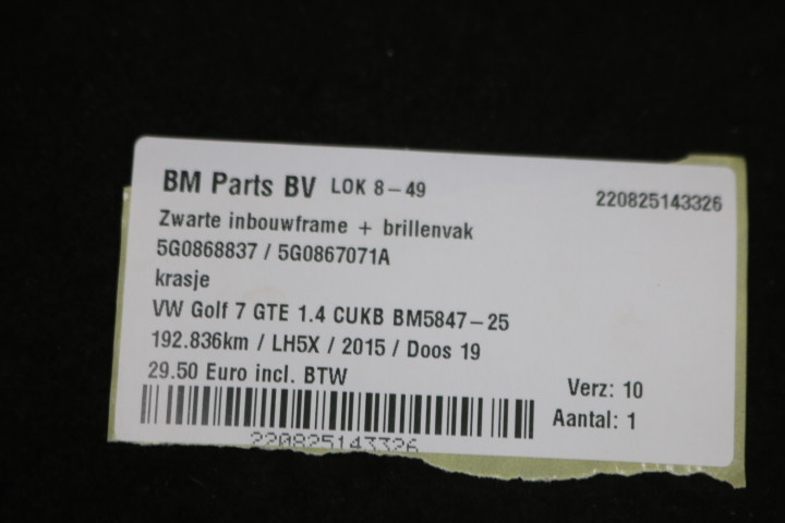 Zwart inbouwframe + brillenvak VW Golf 7