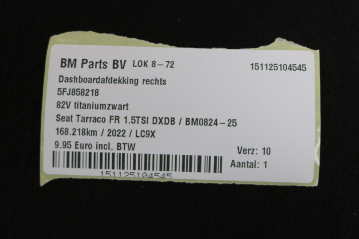 Dashboardafdekking rechts Seat Tarraco FR