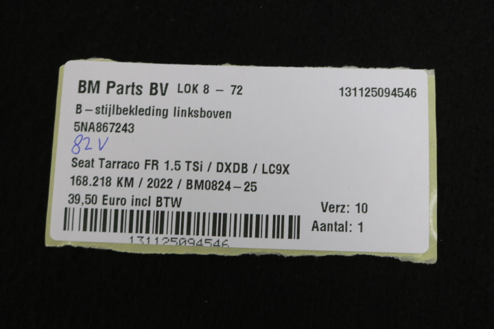 B-stijlbekleding links boven Seat Tarraco FR