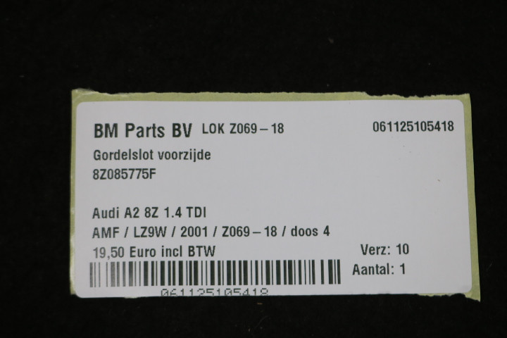Terug / interieur / Airbags & Gordels / Gordel Sloten / Gordelslot voorzijde Audi A2 8Z