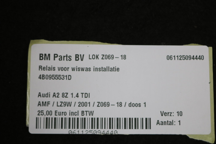 Relais voor wiswas installatie Audi A2 8Z