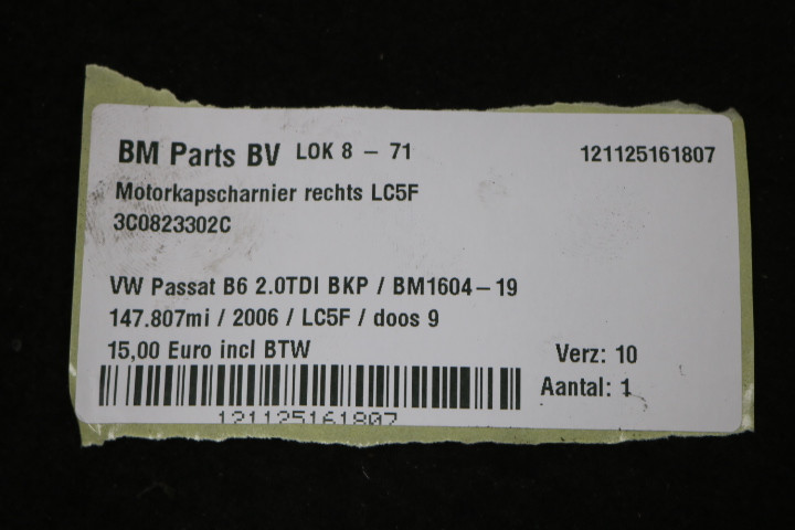 back / Exterieur / Plaatwerk / Motorkapscharnier / Motorkapscharnier rechts LC5F VW Passat B6