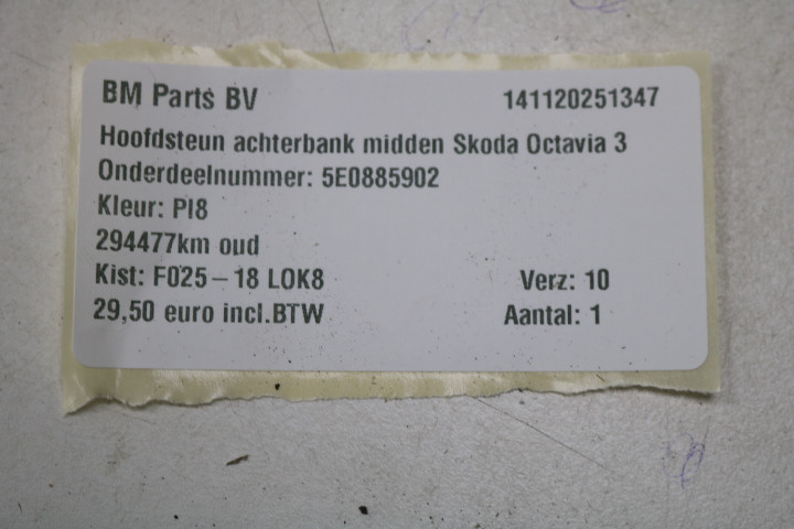 Hoofdsteun achterbank midden Skoda Octavia 3 PI8