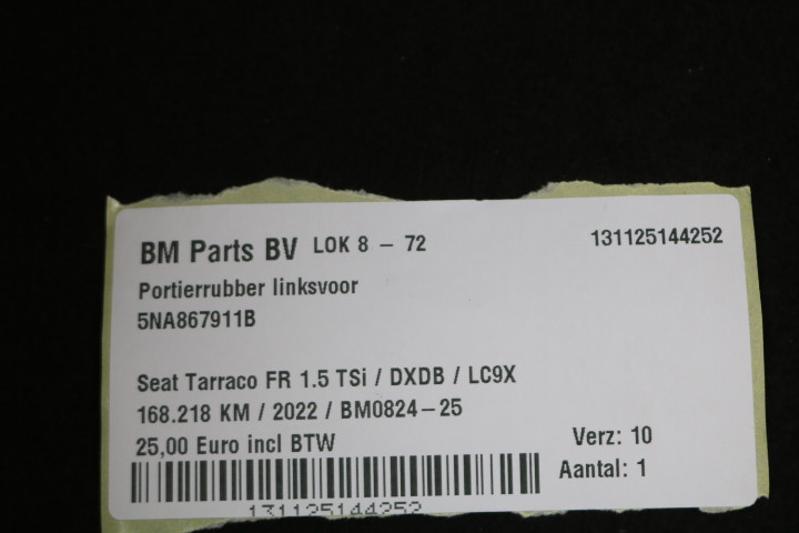 back / interieur / Deur / Portier Rubbers / Portierrubber linksvoor Seat Tarraco FR
