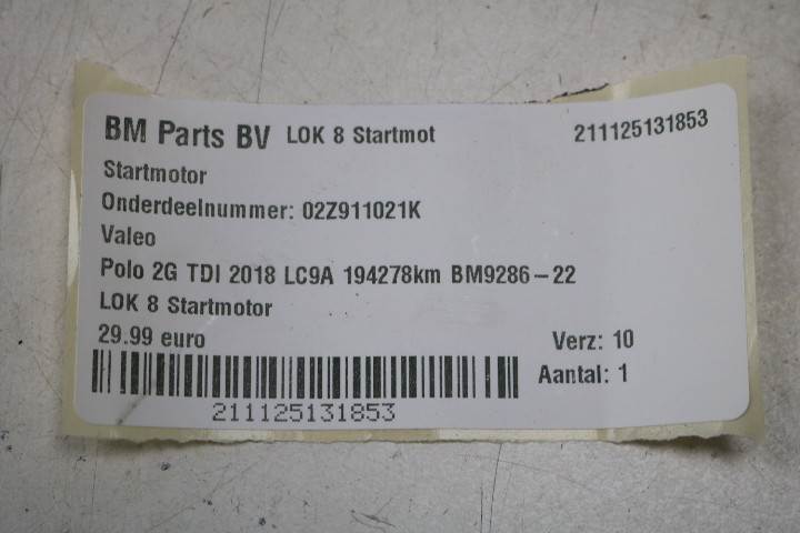 Startmotor VW Polo 2G