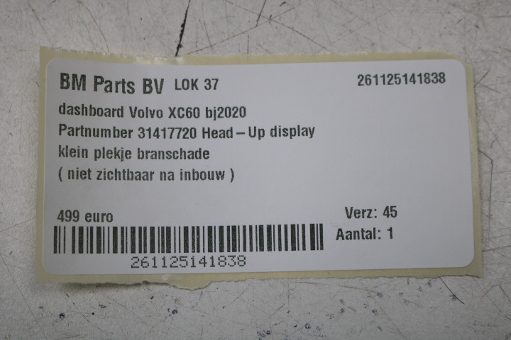 Head - Up Display / Klein plekje brandschade (niet zichtbaar na inbouw)