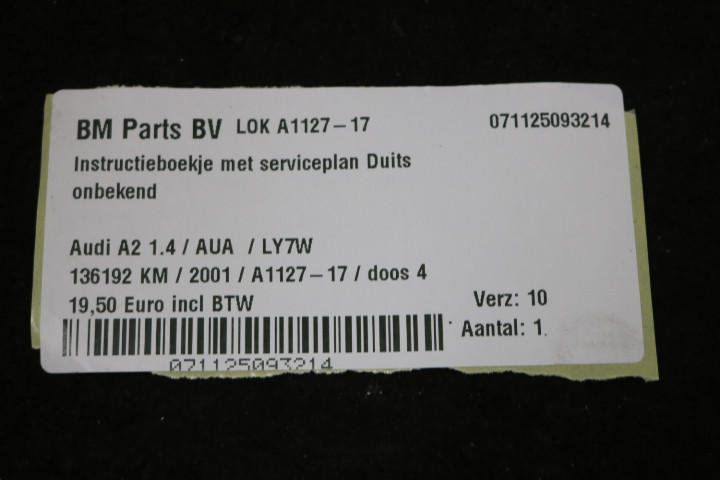 Instructieboekje met serviceplan Duits Audi A2