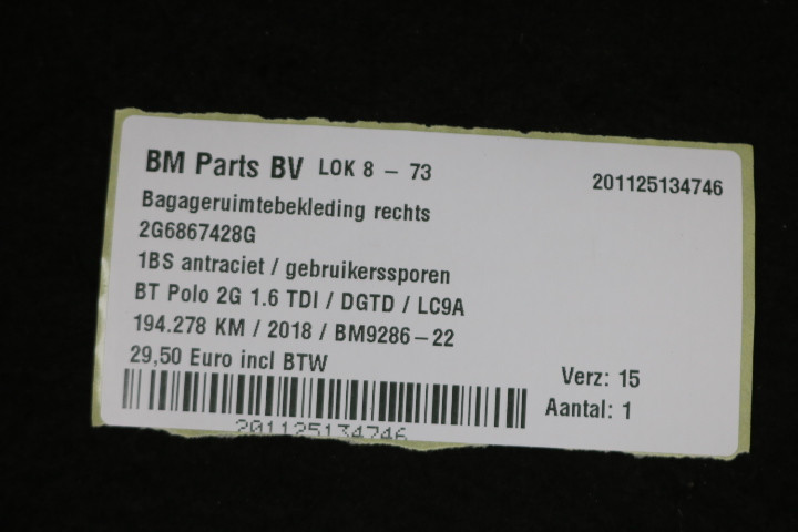 Bagageruimtebekleding rechts VW Polo 2G