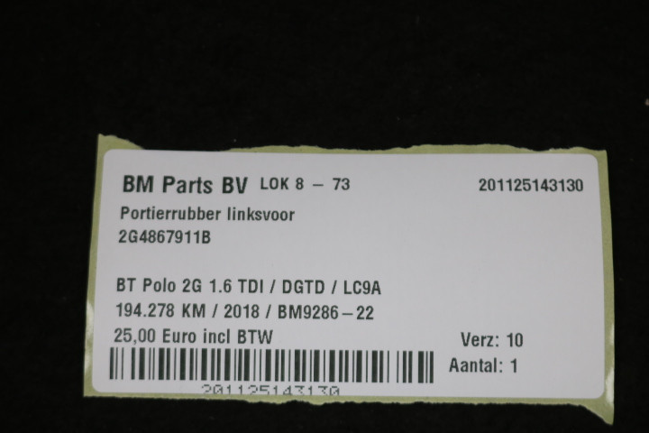 Portierrubber linksvoor VW Polo 2G