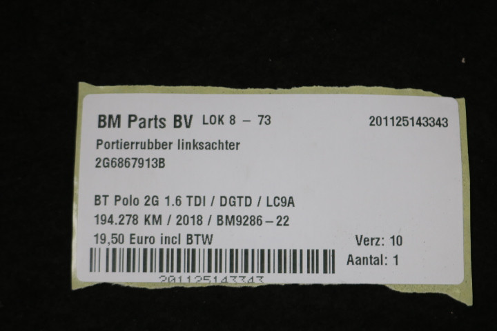 Portierrubber linksachter VW Polo 2G