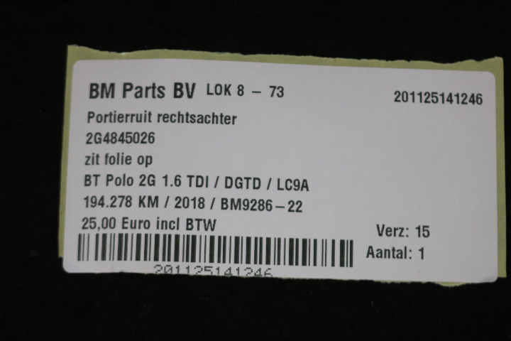 Portierruit rechtsachter VW Polo 2G