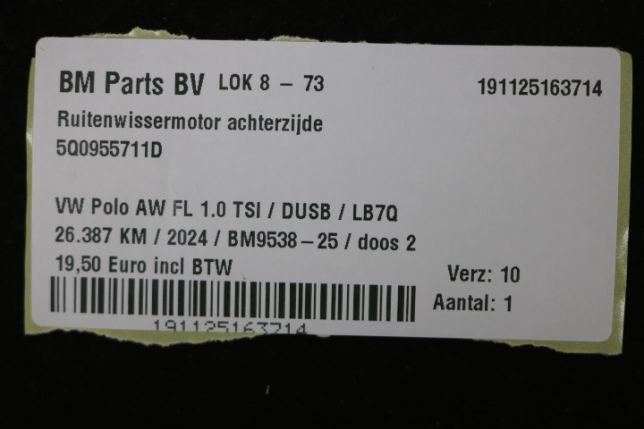 Ruitenwissermotor achterzijde VW Polo 2G