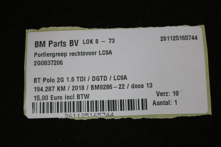 Portiergreep rechtsvoor LC9A VW Polo 2G