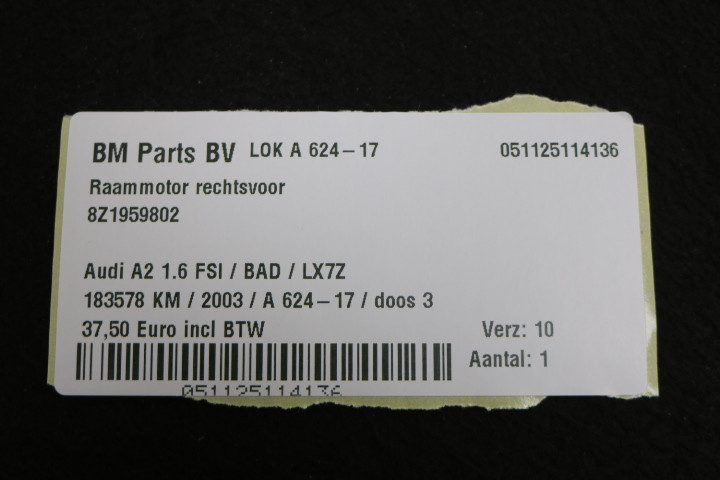 Raammotor rechtsvoor Audi A2
