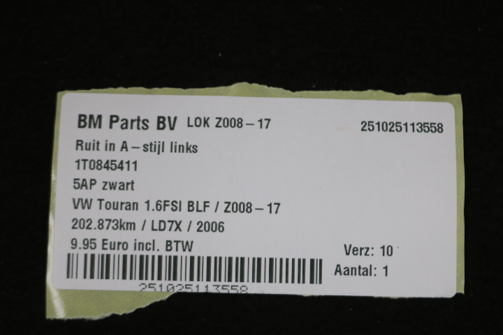 Ruit in A- stijl links VW Touran