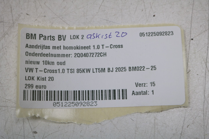 Aandrijfas rechts met homokineet T-Cross