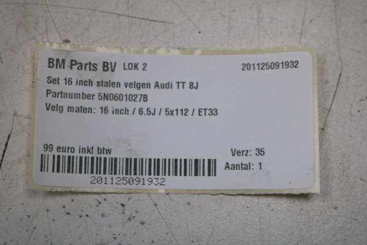 Velg maten: 16 inch / 6.5J / 5x112 / ET33