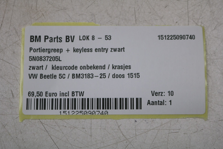 Portiergreep met kessy zwart VW Beetle 5C
