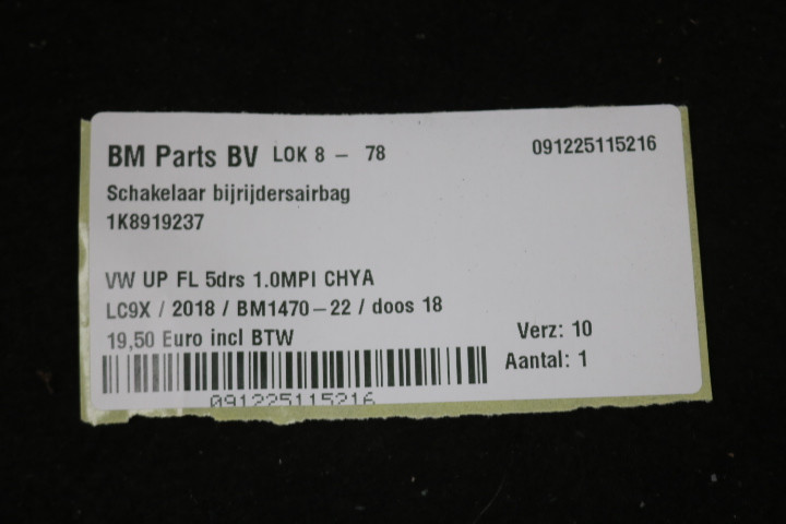 Schakelaar bijrijdersairbag Up! FL