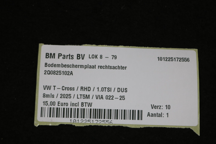 Bodembeschermplaat rechtsachter VW T-Cross