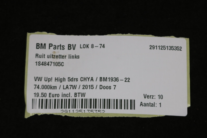 Ruit uitzetter links VW Up!