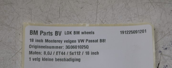 ORIGINEEL! 18 inch Monterey velgen VW Passat B8! 3G0601025Q
