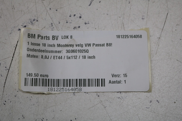 Org. 1 losse 18 inch Monterey velg VW Passat B8