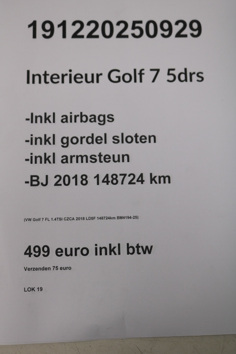 Interieur VW Golf 7 5drs