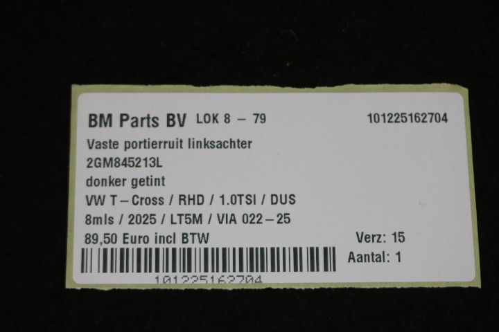 Verzendkosten: € 15,00